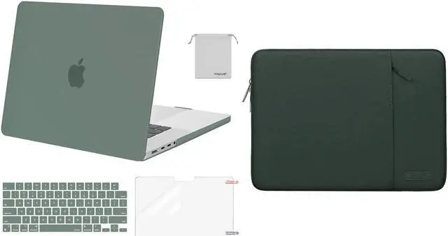 MOSISO Compatible with MacBook Pro 16 inch Case 2021 2022 Release A2485 M1, Vertical Sleeve Bag&Plastic Hard Cased&Keyboard Cover&Screen Protector&Storage Bag, Midnight Green