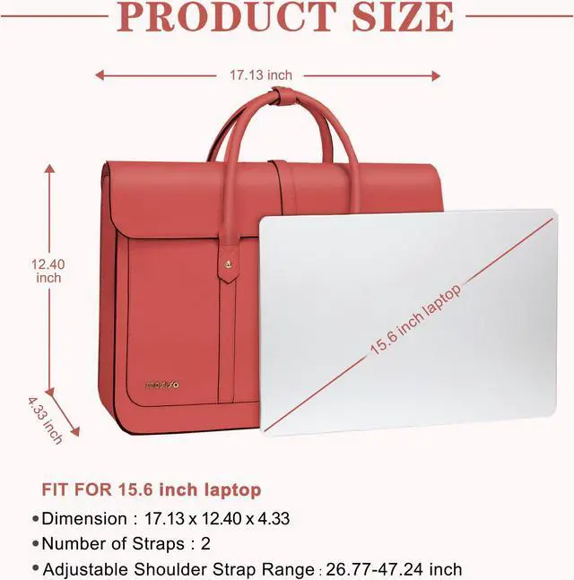 MOSISO Laptop Bag for Women, 15- 15.6 inch PU Leather Laptop Shoulder Bags Convertible Backpack, 16 inch Messenger Bags Casual Handbag Work Briefcase Travel Computer Bag with Bowknot, Coral