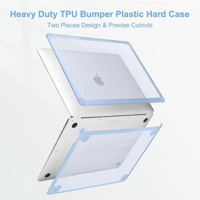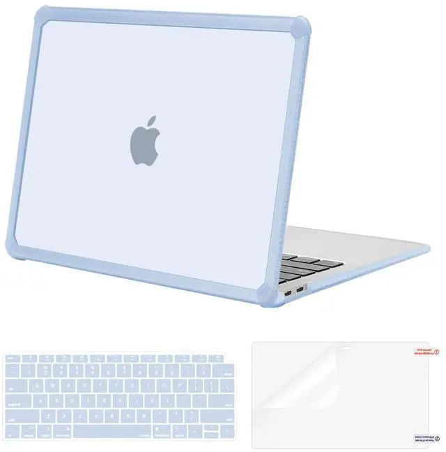 MOSISO Compatible with MacBook Air 13 inch Case 2022-2018 Release A2337 M1 A2179 A1932, Anti-Cracking Heavy Duty Plastic Hard Shell Case with TPU Bumper&Keyboard Cover&Screen Film, Baby Blue