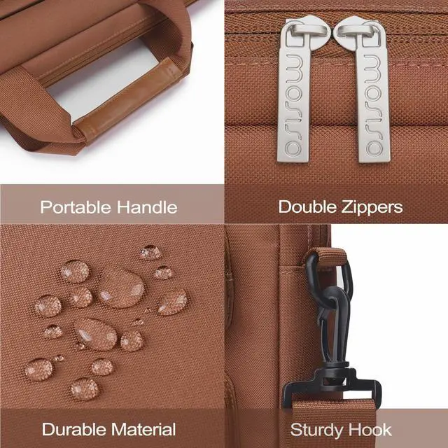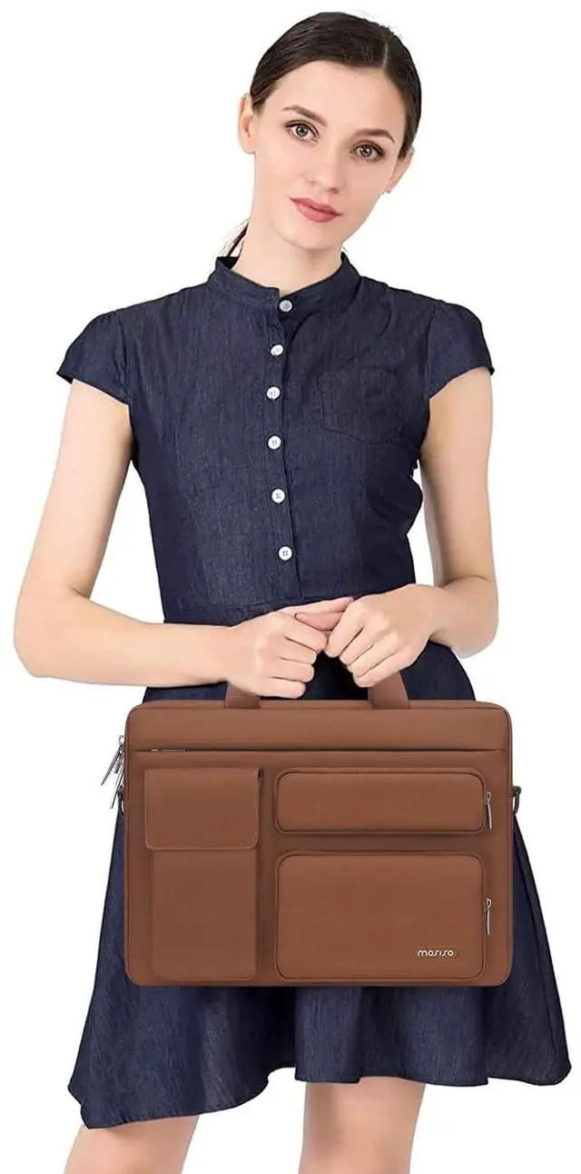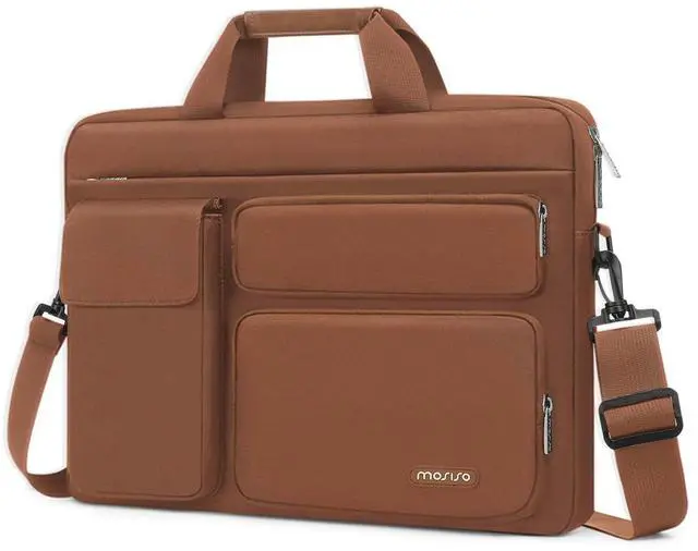 MOSISO Laptop Shoulder Bag 15.6 inch, 15-15.6 inch Computer Bag Compatible with MacBook Pro 16 inch, HP, Dell, Lenovo, Notebook with 2 Raised&1 Flapover&1 Horizontal Pocket&Handle&Belt, Caramel Brown