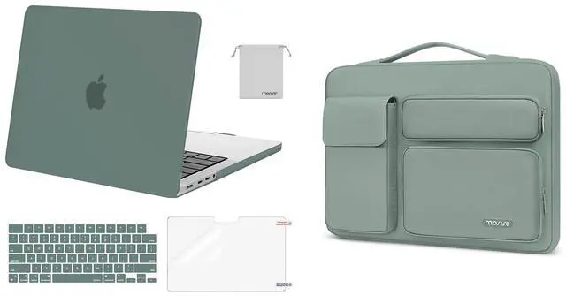 MOSISO Compatible with MacBook Pro 14 inch Case 2024-2021 Release M3 A2918 A2992 M2 A2779 M1 A2442,Plastic Hard Case&Keyboard Cover&Screen Protector&Pouch&Bag with Pockets,Midnight Green&Antique Green