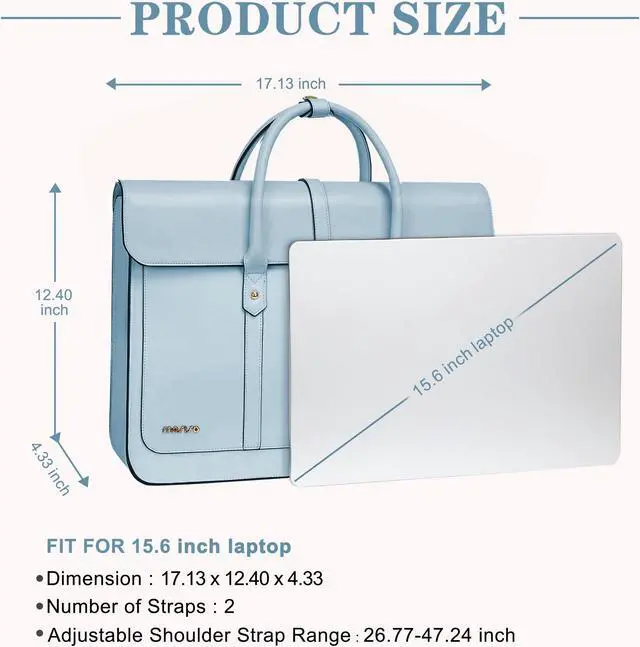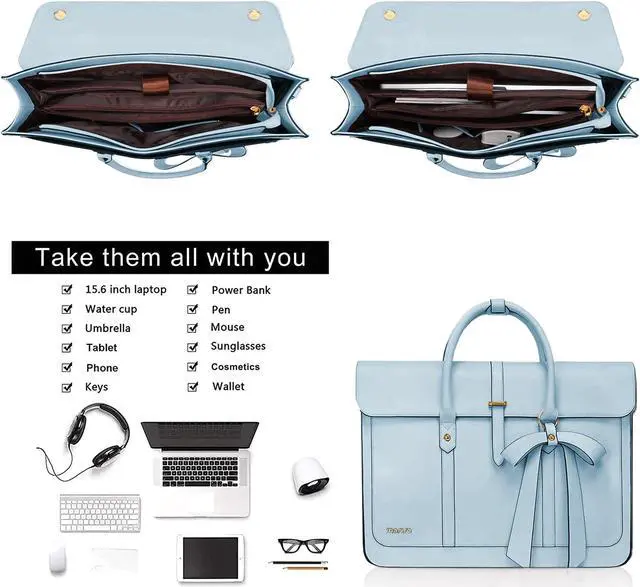 MOSISO Laptop Bag for Women, 15- 15.6 inch PU Leather Laptop Shoulder Bags Convertible Backpack, 16 inch Messenger Bags Casual Handbag Work Briefcase Travel Computer Bag with Bowknot, Air Blue