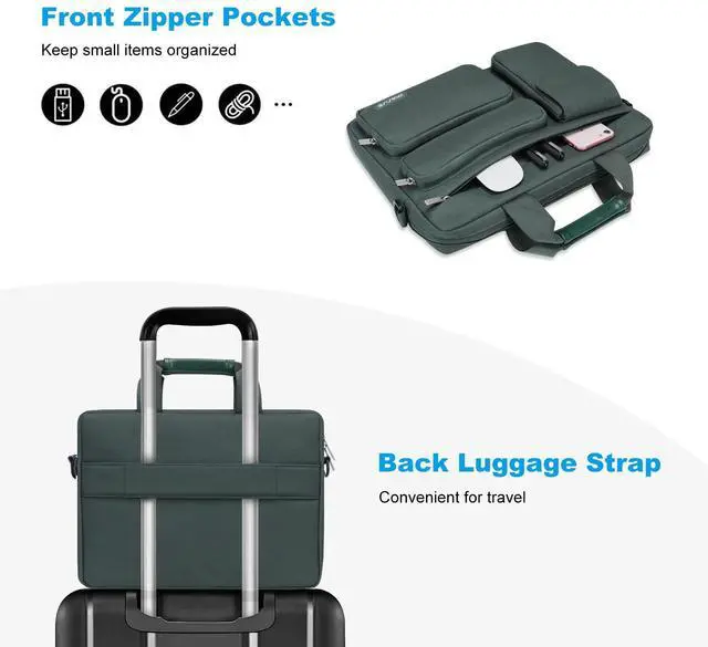 MOSISO Laptop Shoulder Bag 15.6 inch, 15- 15.6 inch Computer Bag Compatible with MacBook Pro 16 inch, HP, Dell, Lenovo, Notebook with 2 Raised&1 Flapover&1 Horizontal Pocket&Handle&Belt, Emerald Green