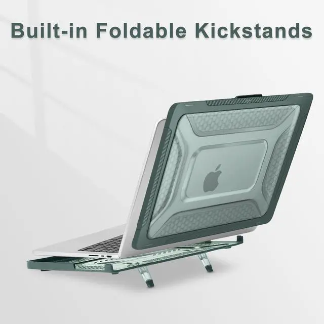 The built-in foldable kickstands provide an appropriate ergonomic viewing & typing angle, give you a better visual experience. Engineered shock-absorbing beveled ridges honeycomb design wraparound TPU bumper heavy duty hard shell, provides ultimate protection for your laptop against scratches, drops, accidental scuffs and other damages.