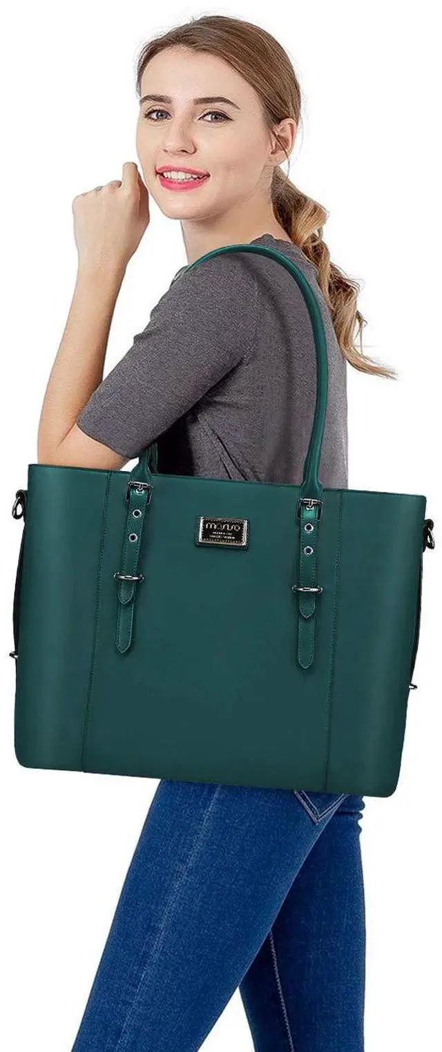 MOSISO PU Leather Laptop Tote Bag for Women (17- 17.3 inch), Waterproof Large Capacity Business Work Briefcase Shoulder Laptop Bag, Deep Teal