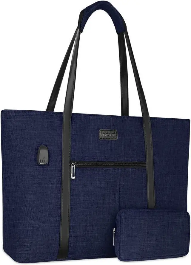 MOSISO USB Port Laptop Tote Bag for Women, Compatible with MacBook, 17- 17.3 inch Notebook and Chromebook, Work Travel Business Computer Bag with Small Purse, Navy Blue