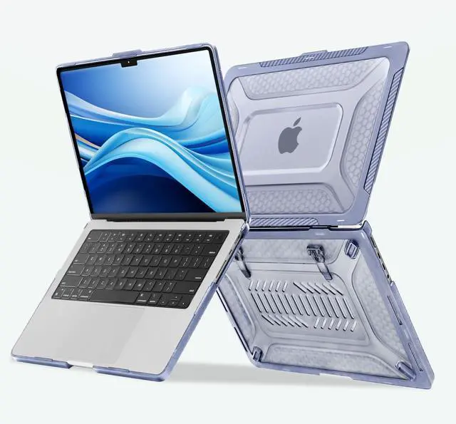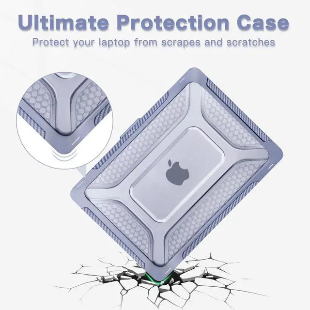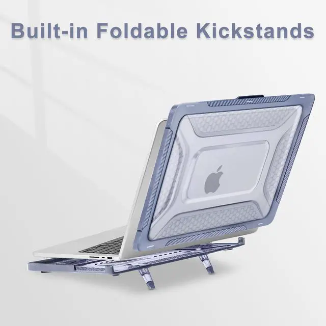 The built-in foldable kickstands provide an appropriate ergonomic viewing & typing angle, give you a better visual experience. Engineered shock-absorbing beveled ridges honeycomb design wraparound TPU bumper heavy duty hard shell, provides ultimate protection for your laptop against scratches, drops, accidental scuffs and other damages.