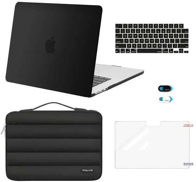 MOSISO Compatible with MacBook Air 15 inch Case 2025 2024 2023 Release M4 A3241 M3 A3114 M2 A2941 Touch ID, Plastic Hard Shell&Puffy Sleeve Bag&Keyboard Cover&Webcam Cover&Screen Film, Black