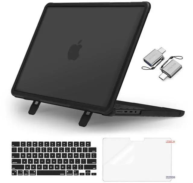 Engineered shock-absorbent beveled ridges design wraparound bumper heavy duty shockproof hard shell case cover with carbon fiber edge design, provides ultimate protection for your laptop against a