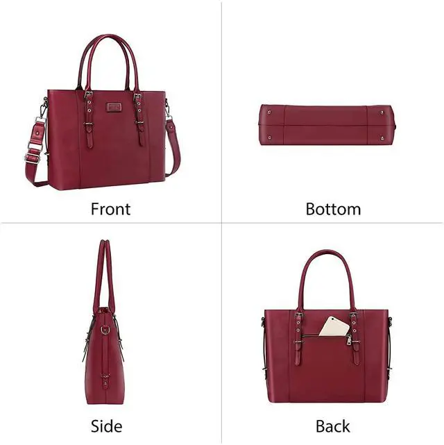 MOSISO PU Leather Laptop Tote Bag for Women (17- 17.3 inch), Waterproof Large Capacity Business Work Briefcase Shoulder Laptop Bag, Wine Red