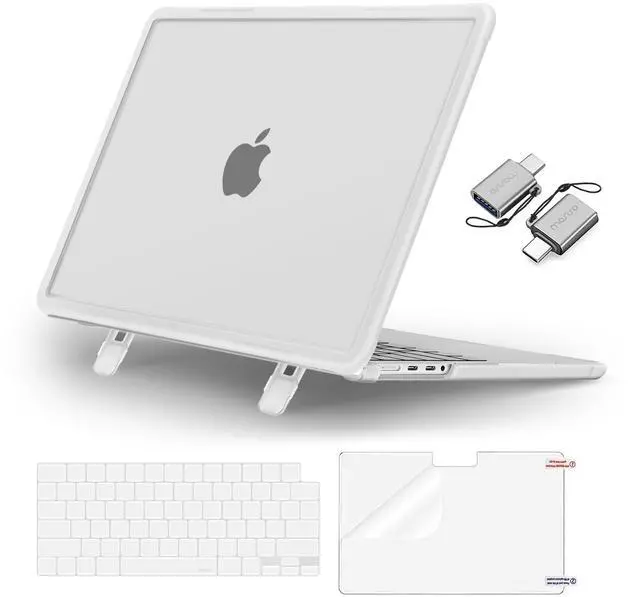 MOSISO Compatible with MacBook Pro 14 inch Case 2025-2021 M5 M4 M3 M2 M1 A3434 A3112 A3185 A3401 A2918 A2992 A2779 A2442, Heavy Duty Hard Case with Stand&Keyboard Skin&Screen Film&Type C, Translucent