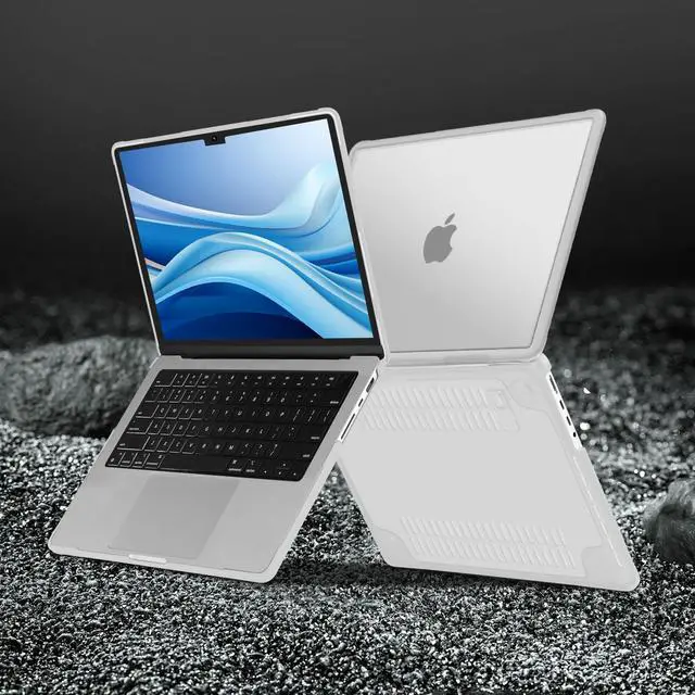 Engineered shock-absorbent beveled ridges design wraparound bumper heavy duty shockproof hard shell case cover with carbon fiber edge design, provides ultimate protection for your laptop against a