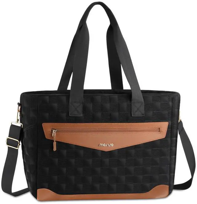 MOSISO Laptop Tote Bag for Women, Square Quilted Lightweight Work Tote Bag with Laptop Compartment & Trolley Belt, 15.6 inch Large Capacity Handbag Shoulder Bag for Teacher,Work,Office,Nurse, Black