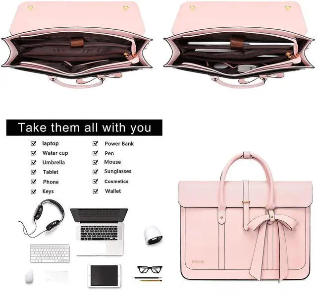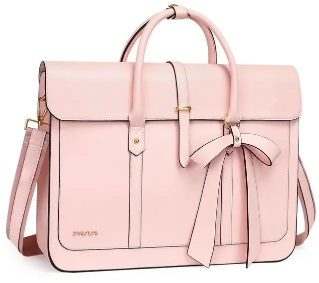MOSISO Laptop Bag for Women, 13-14 inch PU Leather Laptop Shoulder Bags Convertible Backpack, 13.3 inch Messenger Bags Casual Handbag Work Briefcase Travel Computer Bag with Bowknot, Pink