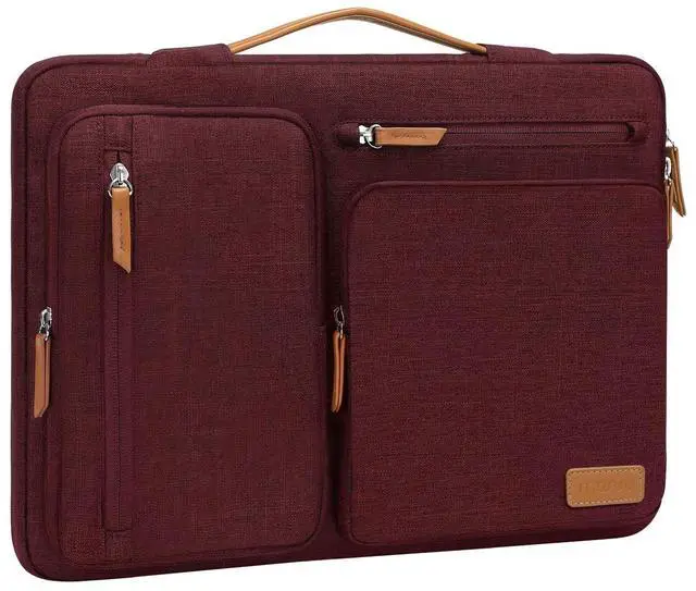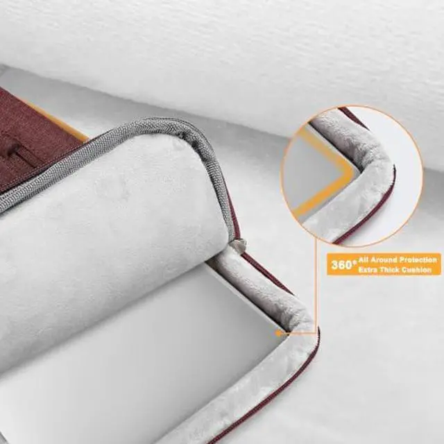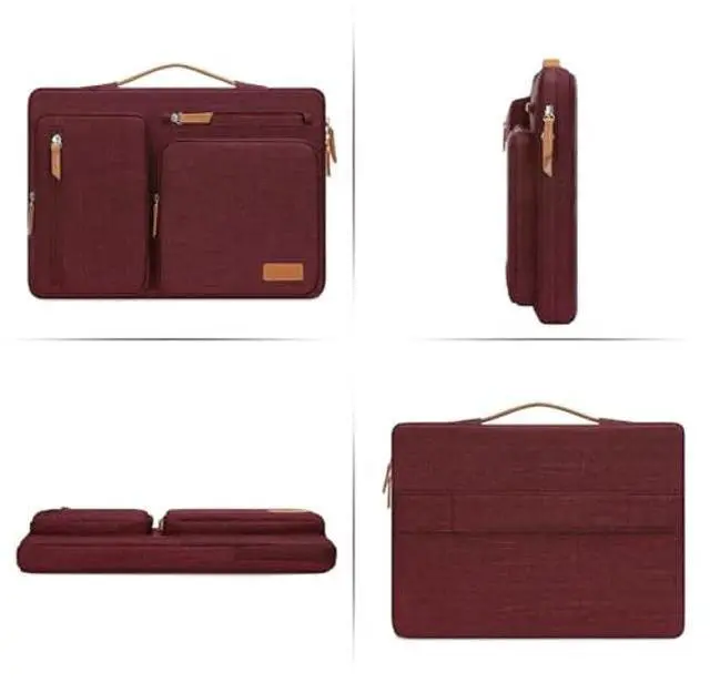360 degree all around protective reinforced interior edge briefcase carrying case bag protect your laptop from any accidental dropping. Extendable handle design makes it to carry your laptop around in comfort, you can also tuck away the handle. Side opening zipper design, avoid accidental dropping of your laptop while carrying. 4 front zipper pockets provide enough space to keep mouse, earphone, pens and notepads, offering added convenience.