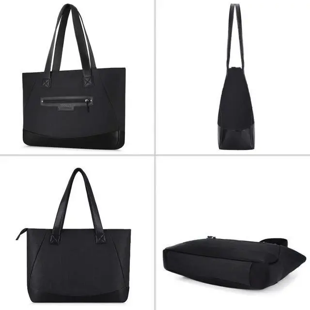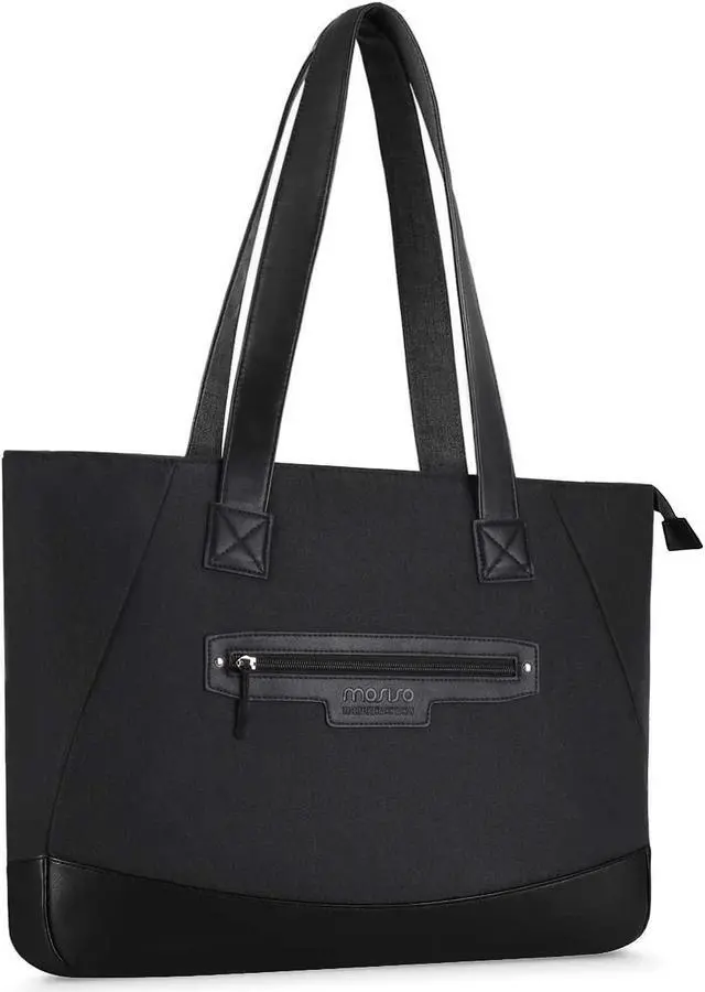 MOSISO Laptop Tote Bag (17- 17.3 inch), Lightweight PU & Polyester Women Work Travel Shopping Carrying Shoulder Handbag with Compartment, Black