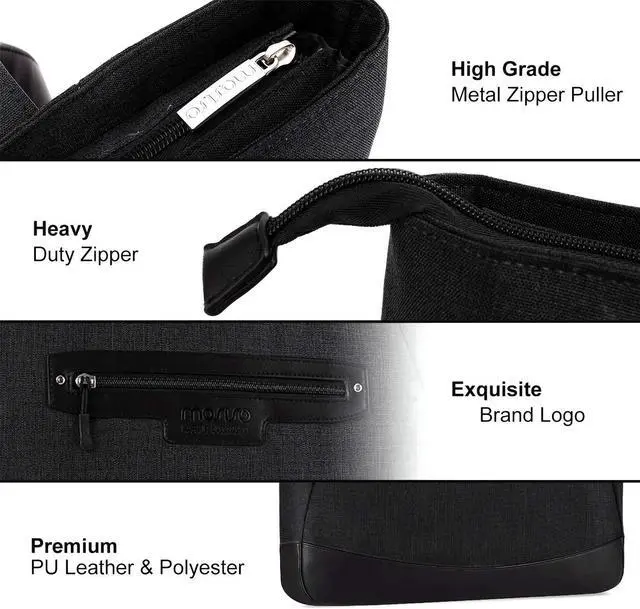 Top-loading zipper prevent your laptop fall out. Open the smooth metal zipper to reveal a spacious interior with 4 large compartments (1 hook&loop-fastening compartment), 2 slip pockets. Suitable for store your tablets, cell phones, keys, credit cards, wallet, sunglasses, makeups and so on.