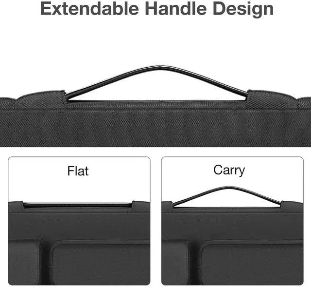 360 degree all around protective reinforced interior edge briefcase carrying case bag protect your laptop from any accidental dropping. Extendable handle design makes it to carry your laptop around in comfort, you can also tuck away the handle. Side opening zipper design, avoid accidental dropping of your laptop while carrying. 2 raised & 1 flapover pockets are convenient for quick-access and store cell phone, wallet, keys and other small items.