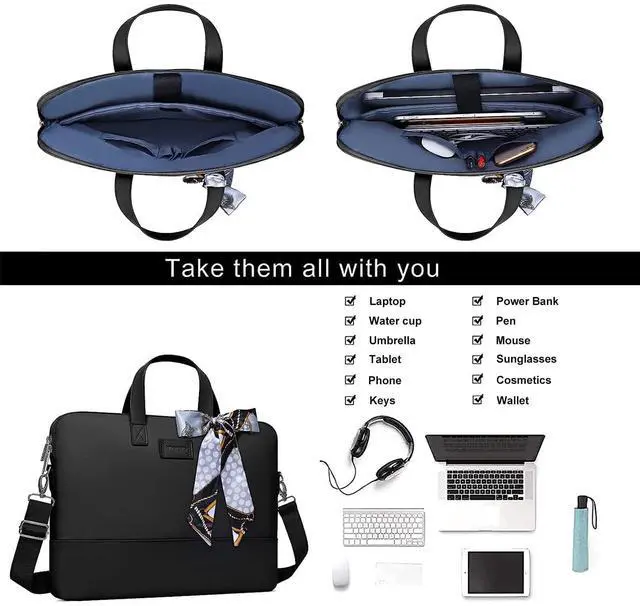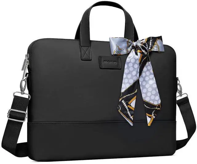 MOSISO Laptop Bag for Women, 15.6 inch Computer Bag Compatible with MacBook Pro 16 inch, HP, Dell, Lenovo, Asus, Razer Notebook, Laptop Shoulder Briefcase with Strap and Silk Scarf, Black