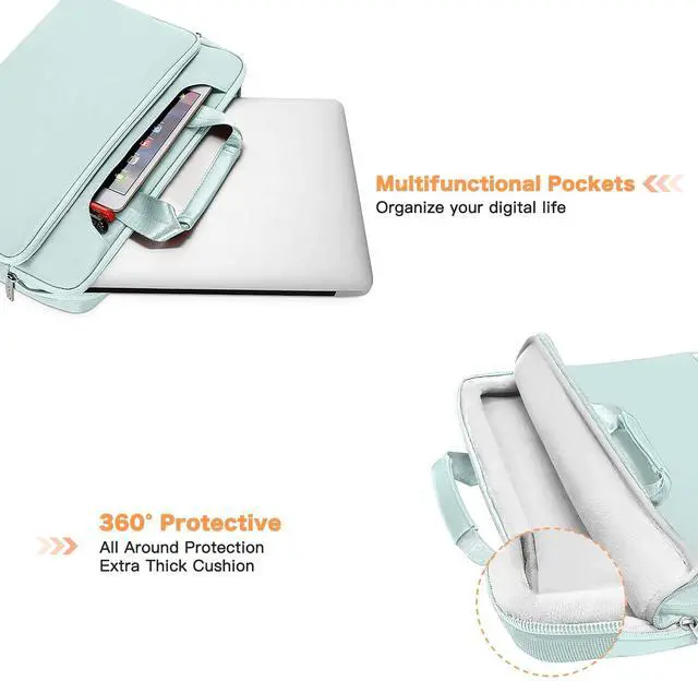 360 degree all around protective reinforced interior edge protect your laptop from any accidental dropping. Features foam padding layer and fluffy fleece fabric lining for bump and shock absorption and protection of your computer from accidental scratches. Top-loading double zippers on the bag glide smoothly and allows convenient access to your laptop computer.