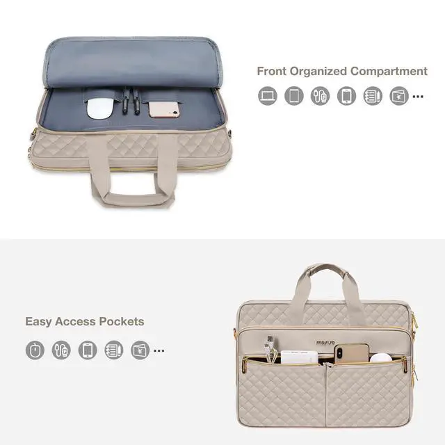 MOSISO 15-15.6 inch Laptop Bag, Briefcase for Women&Men, 16 inch Square Quilted Computer Messenger Bag Office Travel Business with 3 Pockets&Strap, Taupe Brown