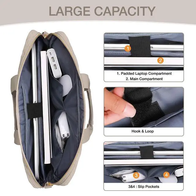 The front 3 zipper pockets provides enough space to keep mouse, earphone, pens and notepads, offering added convenience. Simple and exquisite appearance carrying messenger shoulder bag with pocket is ideal for you to take your laptop out.