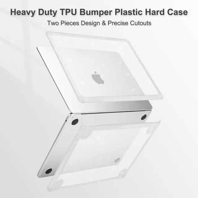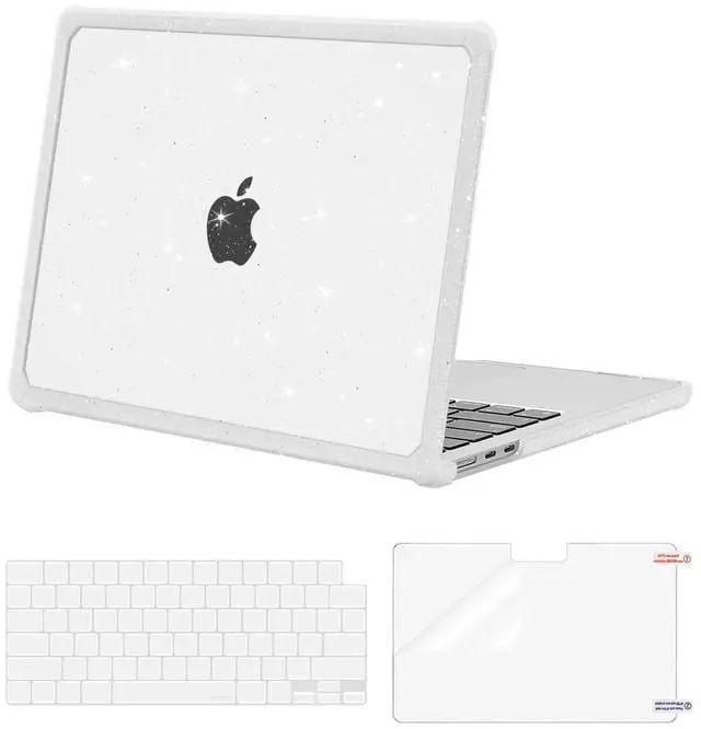 MOSISO Compatible with MacBook Air 13 inch Case 2025 2024 2023 2022 M4 A3240 M3 A3113 M2 A2681, Anti-Cracking TPU Bumper Glitter Hard Case&Keyboard Cover&Screen Film for MacBook Air 13.6, Transparent