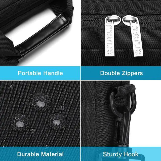 MOSISO Laptop Shoulder Bag 13.3 inch, 13-14 inch Computer Bag Compatible with MacBook Air/Pro 13 / Pro 14, HP Dell ASUS Lenovo with 2 Raised&1 Flapover&1 Horizontal Pocket&Handle&Belt, Black