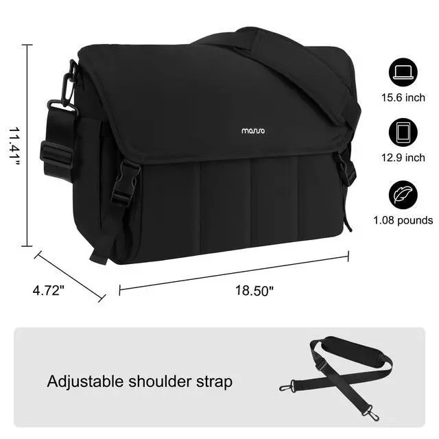 The back pocket dimension: 17.32 x 9.84 inch (L x W). This professional laptop bag features a cushioned laptop sleeve with premium protection, spacious enough for both a 15.6 inch laptop and 12.9 inch iPad. ^^ Large Capacity & Multiple Storage Laptop Satchel Bag with Laptop Compartment. The spacious laptop messenger & shoulder bag features a large main compartment with 7 pockets, offering organized storage for all your essentials. The computer compartment provides a thick padded foam section. Professional design to protect your laptop against accidental impacts and scratches. ^^ Professional & Useful. The laptop briefcase bag with a practical interior features specialized slots for water bottles and umbrellas, providing a designated space for each item. Boasting ample storage and multiple compartments, the bag serves as a teacher organizer, nursing essential, business companion, or travel-ready carry-on.