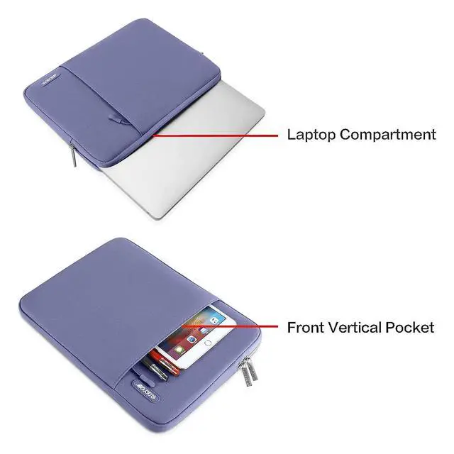 External dimensions: 14.17 x 0.79 x 10.63 inches (L x W x H). The front vertical side pocket dimensions: 9.25 x 9.84 inches (L x W). ^^ Made with polyester material, a top opening zipper gliding smoothly and allows convenient access to your device. Slim and lightweight, does not bulk your device up and can easily slide into your briefcase, backpack or other bag. ^^ Extra pocket in front provides enough space to keep mouse, earphone, pens and notepads, offering added convenience. This protective carrying sleeve case cover bag with pocket is ideal for you to take your laptop notebook computer out. ^^ Features a polyester foam padding layer and fluffy fleece fabric lining for bump and shock absorption and protection of your device against bump, shock and accidental scratches. ^^ Compatible with MacBook Pro 14 2025-2021 M5 M4 M3 M2 M1 A3434 A3112 A3185 A3401 A2918 A2992 A2779 A2442, compatible with MacBook Air 13 2017-2010 A1369 A1466, compatible with MacBook Pro 13 A1425 A1502 A1278 2008-2015; Compatible with Surface Book 3/2/1 13.5 / Surface Laptop 6/5/4/3 13.5 /Surface Laptop 13.8; Compatible with Dell Latitude/Chromebook 13.3; Compatible with HP Elitebook/Spectre/Envy/Stream 13.3; Compatible with Lenovo IdeaPad/ThinkPad Yoga 13.3; Compatible with Acer Chromebook Spin 13.3.
