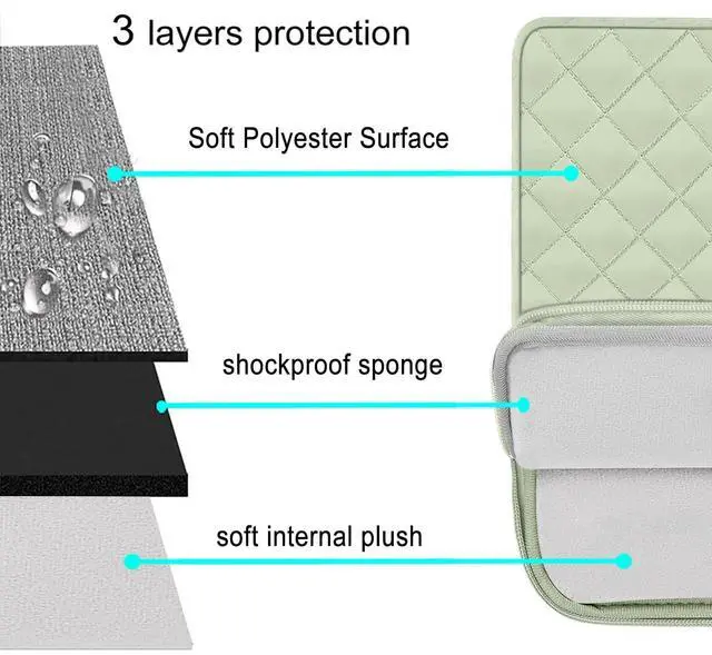 Made with square quilted polyester material, a top opening zipper gliding smoothly and allows convenient access to your device. Slim and lightweight, does not bulk your device up and can easily slide into your briefcase, backpack or other bag.