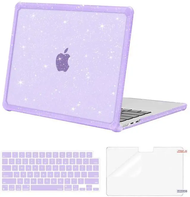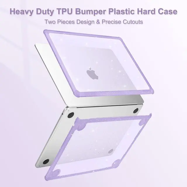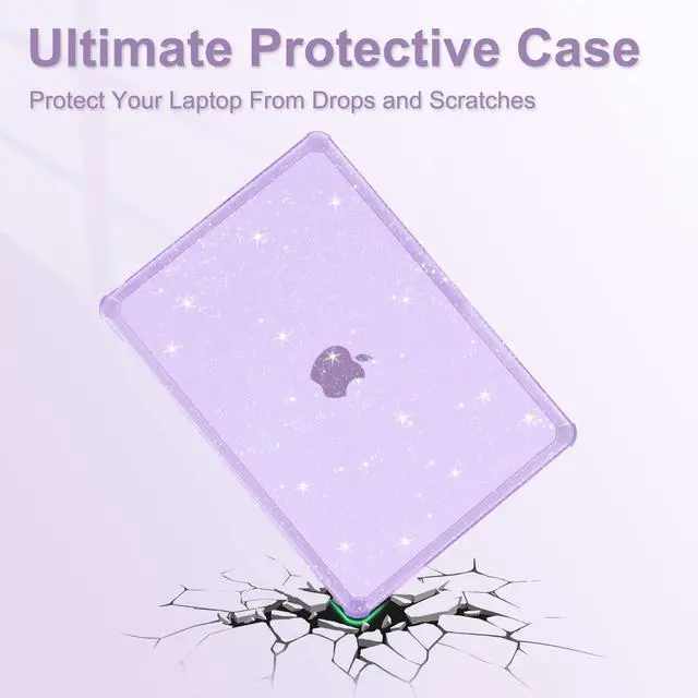 & Touch ID with dimension: 11.97 x 8.46 x 0.44 inch (2022 2023 2024 2025 Released). NO Cut Out design. Precise cut out design allows fully access to all buttons and features. Totally removable, easy to put on and take off. ^^ Engineered, shock-absorbing wraparound TPU bumper on the corners & edges provide ultimate protection for your laptop. The top and bottom case added lots of small glitters, so it will show different color with the difference of light. Sparkly glitter case design makes your laptop more attractive and fashionable all the time. Scratch resistant & anti-fingerprint case protects your laptop from scrapes and scratches. ^^ Including matching color keyboard cover & screen protector to protect your keyboard & screen against spills.