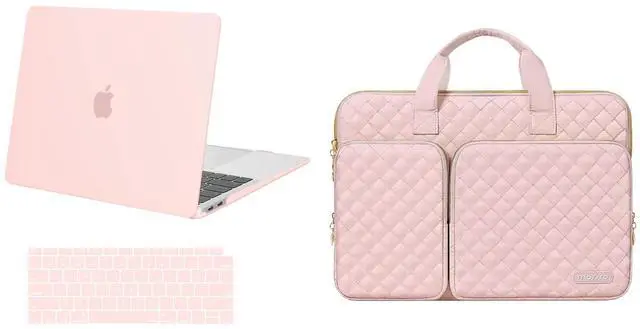 MOSISO Compatible with MacBook Air 13 inch Case 2022-2018 Release A2337 M1 A2179 A1932, Plastic Hard Shell Case & 360 Protective Square Quilted Bag with 2 Pockets & Keyboard Cover, Chalk Pink
