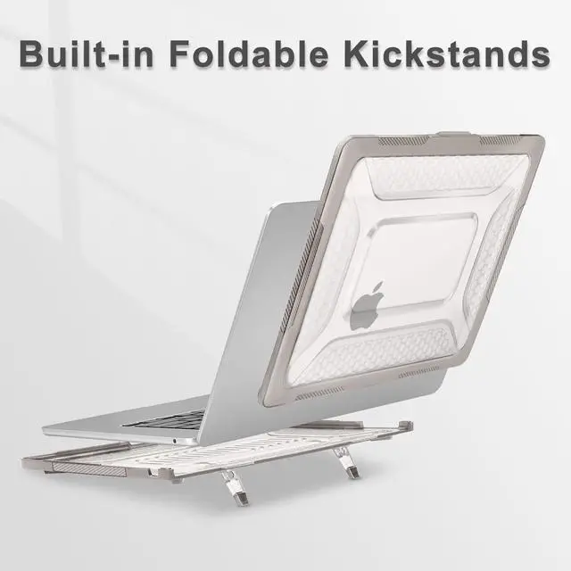 & Touch ID with dimension: 13.4 x 9.35 x 0.45 inch (2025 2024 2023 Released). Totally removable, easy to put on and take off that will not add any risk of harming your laptop during application. ^^ The built-in foldable kickstands provide an appropriate ergonomic viewing & typing angle, give you a better visual experience. Engineered shock-absorbing beveled ridges honeycomb design wraparound TPU bumper heavy duty hard shell, provides ultimate protection for your laptop against scratches, drops, accidental scuffs and other damages. ^^ Including keyboard cover to protect your keyboard against spills. This comfortable protective hard shell case can be used for daily, office, home, travelling, working & study, shock-absorbent, anti-cracking, anti-fingerprint and anti-scratch.
