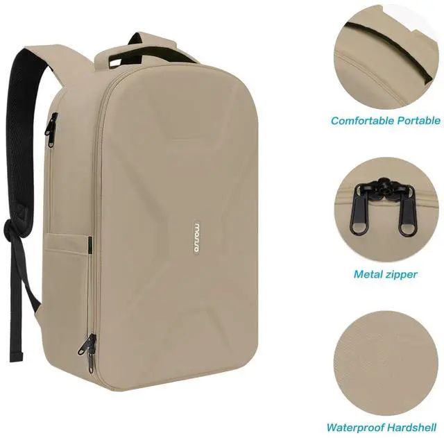 MOSISO 15.6-16 inch 35L Laptop Backpack with USB Charging Port for Women Men, Waterproof Hardshell Travel Business Computer Bag, Anti-Theft Daypack with Luggage Strap, Camel