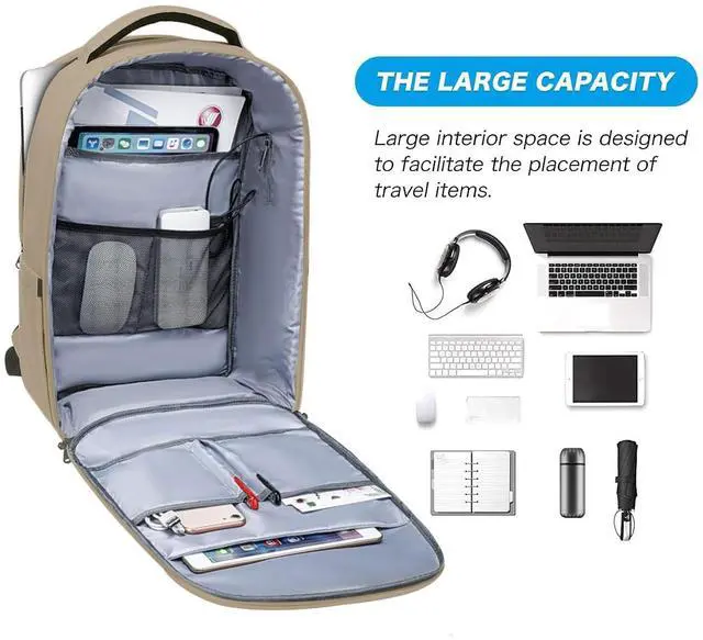 Luggage Strap: With built in USB charging port outside and built in charging cable inside, this backpack offers you a convenient way to charge your phone while walking. Please noted that this backpack doesn't power itself, USB charging port only offers an easy access to charging device. Back luggage strap allows backpack to slide over the luggage tube, secure your backpack in place, provides a convenient way to carry the backpack and release your shoulder.