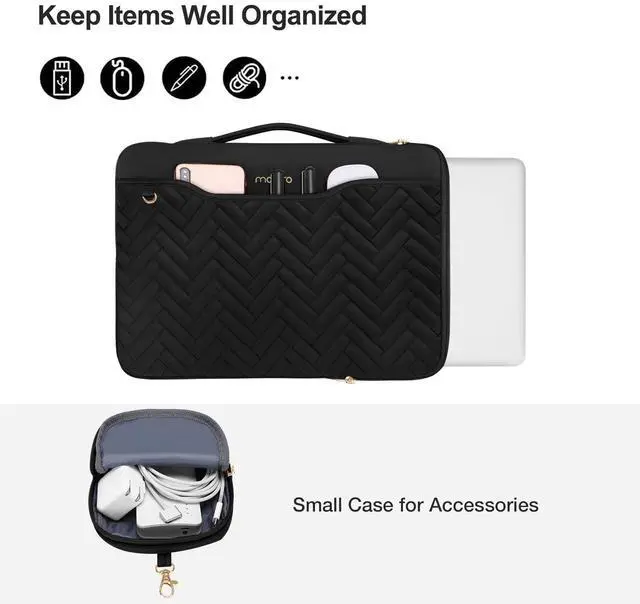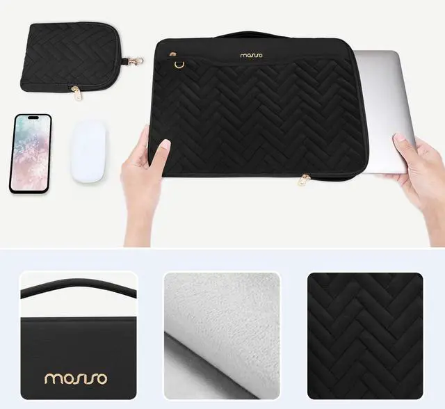 External Dimensions: 15.91 x 11.02 x 0.79 inches (L x W x H). The additional small pouch bag dimension: 4.92 x 6.3 x 1.18 inch (L x W x H). ^^ Made with rectangle quilted polyester material. 360 degree all around protective reinforced interior edge briefcase carrying case bag protect your laptop from any accidental dropping. Features a polyester foam padding layer and fluffy cushion for bump and shock absorption and protection of your device against dust, dirt, bump, shock and accidental scratches. ^^ Additional small storage pouch bag for you to storage laptop mouse and earphone. Same color as the big sleeve bag, harmony and stylish. Simple and exquisite rectangle puffy appearance carrying sleeve case cover bag is ideal for you to take your laptop out. ^^ Considerate design is the back trolley suitcase belt for ease use during business trip. It is really convenient for your happy journey to any where. Simple and exquisite rectangle quilted appearance carrying sleeve case cover bag with handle and pocket is ideal for you to take your laptop out. ^^ Compatible with MacBook Pro 16 inch 2025-2019 M4 A3403 A3186 M3 A2991 M2 A2780 M1 A2485 A2141, compatible with MacBook Pro Retina 15.4 A1398; Compatible with Surface Book 3/2/1 15; Compatible with ASUS ZenBook/VivoBook Go 15.6; Compatible with Lenovo Essential IdeaPad/IdeaPad 3i Chromebook/IdeaPad 1/V15 15.6; Compatible with Acer Aspire Go 15.6; Compatible with NIMO 15.6, Compatible with HP Victus/ProBook/Spectre/Envy/Omen/Pavilion 15.6; Compatible with Dell Inspiron/XPS/Vostro/Latitude 15.6.
