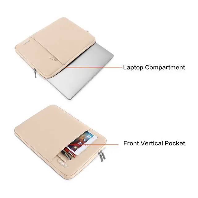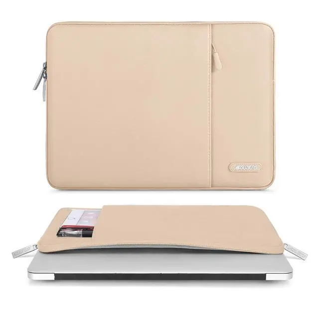 MOSISO Laptop Case 13.3 inch, 13-13.3 inch Laptop Sleeve Compatible with MacBook Air/Pro 13/Pro 14 M5 M4 M3 M2 M1, HP Dell ASUS Lenovo,Polyester Vertical Computer Sleeve Bag with Pocket, Apricot