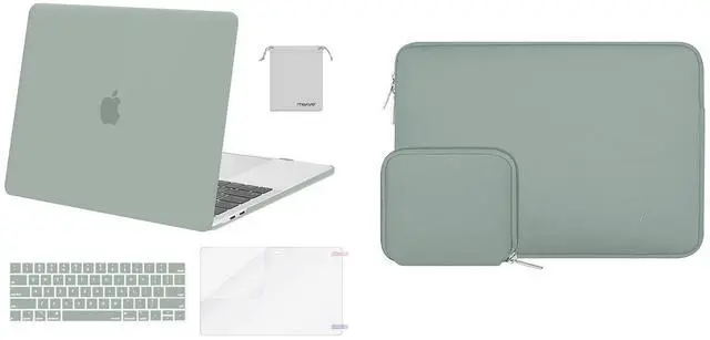 MOSISO Compatible with MacBook Pro 13 inch Case M2 2024-2016 A2338 M1 A2251 A2289 A2159 A1989 A1708 A1706, Plastic Hard Shell&Neoprene Sleeve Bag with Small Case&Keyboard Cover, Antique Green