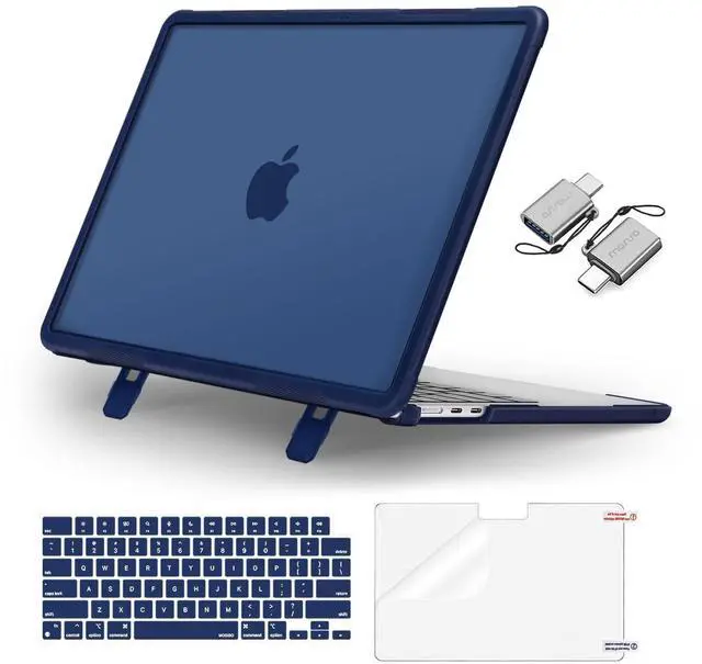 ^^ WARNING: This case is NOT compatible with other model laptops. Please kindly check the model number "Axxxx" on the back of the laptop before your purchase, make sure you choose the exact same model number as the listing title stated "A3240" or "A3113" or "A2681" that compatible with MacBook Air 13 inch case M4 & compatible with MacBook Air 13 inch case M3 & compatible with MacBook Air 13 inch case M2. No cut out design, semi-transparent case allowing logo to shine through. ^^ Engineered shock-absorbent beveled ridges design wraparound bumper heavy duty hard shell with carbon fiber edge design, provides ultimate protection for your laptop against accidental scuffs, drops, and scratches. Fully vented for heat disbursement, fully access to all buttons and features. Totally removable, easy to put on and take off. The built-in foldable kickstands provide an ergonomic typing angle, also give you a better visual experience. ^^ 2 pack USB C to USB adapter plug the adapter USB Type-C end into laptop USB-C port, then connect another female USB 3.0 port to standard USB-A device, such as, mouse, keyboard, SSD and flash.