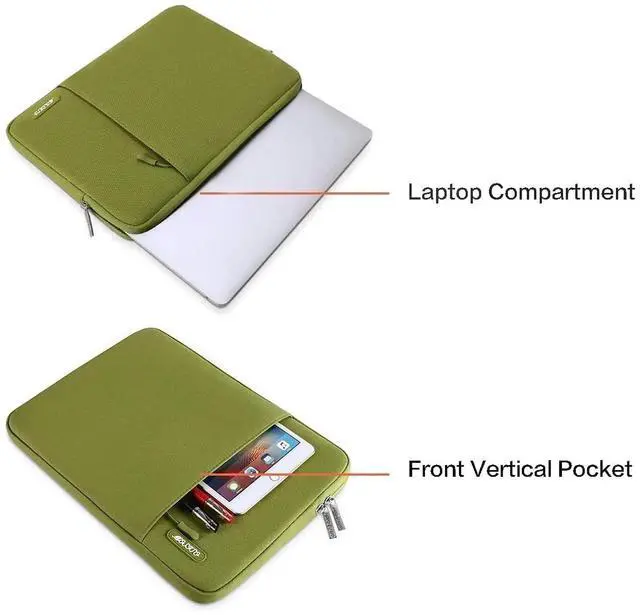 External dimensions: 14.96 x 0.79 x 10.83 inches (L x W x H). The front vertical side pocket dimensions: 10.63 x 10.24 inches (L x W). ^^ Made with polyester material, a top opening zipper gliding smoothly and allows convenient access to your device. Slim and lightweight, does not bulk your device up and can easily slide into your briefcase, backpack or other bag. ^^ Extra pocket in front provides enough space to keep mouse, earphone, pens and notepads, offering added convenience. This protective carrying sleeve case cover bag with pocket is ideal for you to take your laptop notebook computer out. ^^ Features a polyester foam padding layer and fluffy fleece fabric lining for bump and shock absorption and protection of your device against bump, shock and accidental scratches. ^^ Compatible with MacBook Air 15 15.3 inch M4 A3241 M3 A3114 M2 A2941 2025 2024 2023, compatible with MacBook Pro 15 inch A1990 A1707; Compatible with Surface Laptop 5/4/3 15 inch; Compatible with Dell XPS 15/Vostro/Chromebook 15; Compatible with Acer Swift 7/Switch 7/Swift 5/Aspire One Cloudbook 14; Compatible with Lenovo ThinkPad X1 Yoga, compatible with Lenovo ThinkPad T-Series/E-Series/Ideapad/Flex 14; Compatible with HP Probook/ZBook/SlateBook/EliteBook 14.
