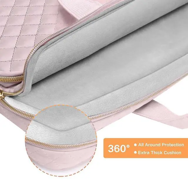 MOSISO 360 Protective Laptop Case 13.3 inch, 13-13.3 inch Laptop Sleeve Compatible with MacBook Air/Pro 13/Pro 14,HP Dell ASUS Lenovo, Square Quilted Bag Cover with 2 Pockets&Handle&Belt, Pink