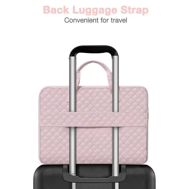 Why should take this bag? You can take this MOSISO square quilted polyester laptop sleeve bag with 2 front separate pockets & fix handle & back belt to hold your laptop while you are on the go.