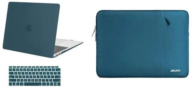 MOSISO Compatible with MacBook Air 13 inch Case 2018-2020 Rlease A2337 M1 A2179 A1932, Plastic Hard Shell Case&Vertical Sleeve Bag with Pocket&Keyboard Cover, Deep Teal