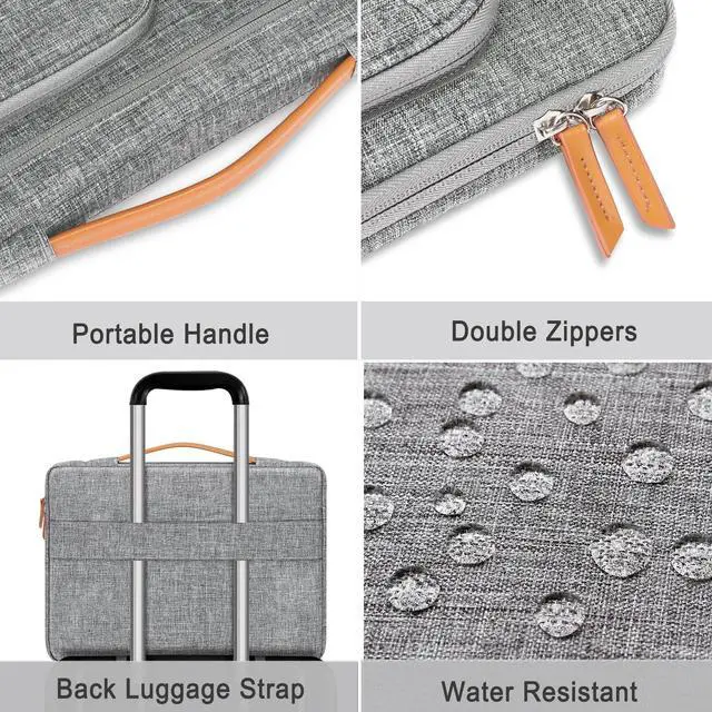 Right vertical pocket dimensions: 5.53 x 6.29 inches (L x W). ^^ 360 degree all around protective reinforced interior edge briefcase carrying case bag protect your laptop from any accidental dropping. Extendable handle design makes it to carry your laptop around in comfort, you can also tuck away the handle. Side opening zipper design, avoid accidental dropping of your laptop while carrying. 5 front accessory zipper pockets provide enough space to keep mouse, earphone, pens and notepads, offering added convenience. ^^ The laptop sleeve with organizer pockets outer polyester fabric of the case enable you to carry your laptop / notebook / Ultrabook computer in a uniquely sleek style. Features a polyester foam padding layer and fluffy cushion for bump and shock absorption and protection of your device against dust, dirt, bump, shock and accidental scratches. ^^ Considerate design is the back trolley suitcase belt for ease use during business trip. It is really convenient for your happy journey to any where. Slim and lightweight; does not bulk your laptop up and can easily slide into your briefcase, backpack, or other bag. This protective carrying sleeve case cover bag with handle and pockets is ideal for you to take your laptop out.