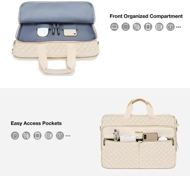 MOSISO 13-13.3 inch Laptop Bag, Briefcase for Women&Men, 14 inch Square Quilted Computer Messenger Bag Office Travel Business with 3 Pockets&Strap, Beige