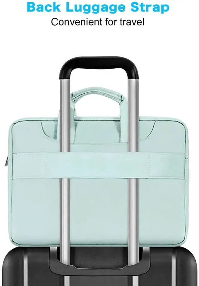 External Dimensions: 14.96 x 1.39 x 10.63 inch (L x W x H). The front horizontal side pocket dimensions: 13.78 x 7.68 inch (L x W). ^^ 360 degree all around protective reinforced interior edge protect your laptop from any accidental dropping. Features foam padding layer and fluffy fleece fabric lining for bump and shock absorption and protection of your computer from accidental scratches. Top-loading double zippers on the bag glide smoothly and allows convenient access to your laptop computer. ^^ Matching color removable and adjustable padding shoulder strap varied from 29.5 - maximum 52.3 inch, top handles also can tuck away in the pockets when not needed. Large front pocket with inner small pocket keep all your daily accessories well organized. Proviode enough space to keep mouse, pens, mobile phone, cables, cards and other small accessories. ^^ You can use it as shoulder bag, briefcase bag and sleeve bag in whatever way you like. Back luggage strap allows bag to slide over the luggage tube, secure your bag in place, provides a convenient way to carry the bag and release your shoulder. ^^ Compatible with MacBook Pro 14 2025-2021 M5 A3434 M4 A3112 A3185 A3401 M3 A2918 A2992 M2 A2779 M1 A2442, compatible with MacBook Air 13 2017-2010 A1369 A1466, compatible with MacBook Pro 13 A1425 A1502 A1278 2008-2015; Compatible with Surface Book 3/2/1 13.5 /Surface Laptop 6/5/4/3 13.5 /Surface Laptop 13.8; Compatible with Dell Latitude/Chromebook 13.3; Compatible with HP Elitebook/Spectre/Envy/Stream 13.3; Compatible with Lenovo IdeaPad/ThinkPad 13.3; Compatible with Acer Chromebook 13.3.