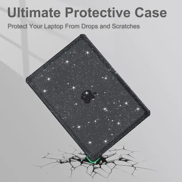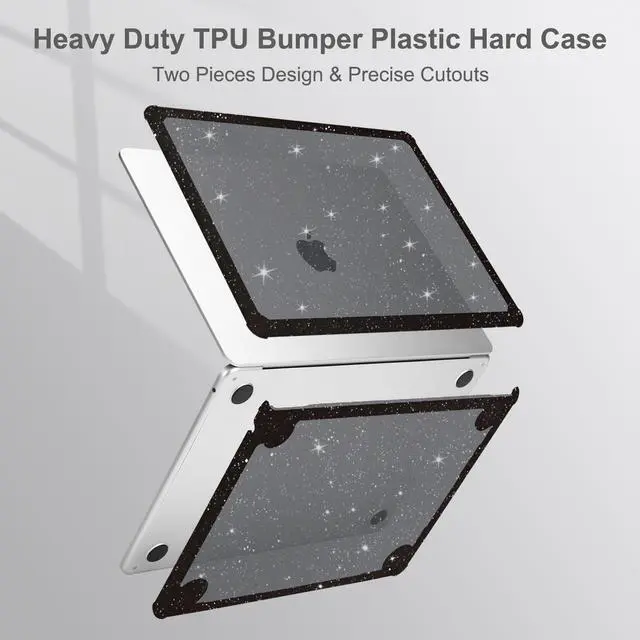 & Touch ID with dimension: 11.97 x 8.46 x 0.44 inch (2022 2023 2024 2025 Released). NO Cut Out design. Precise cut out design allows fully access to all buttons and features. Totally removable, easy to put on and take off. ^^ Engineered, shock-absorbing wraparound TPU bumper on the corners & edges provide ultimate protection for your laptop. The top and bottom case added lots of small glitters, so it will show different color with the difference of light. Sparkly glitter case design makes your laptop more attractive and fashionable all the time. Scratch resistant & anti-fingerprint case protects your laptop from scrapes and scratches. ^^ Including matching color keyboard cover & screen protector to protect your keyboard & screen against spills.