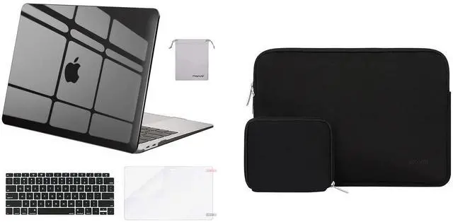 MOSISO Compatible with MacBook Air 13 inch Case 2022-2018 A2337 M1 A2179 A1932, Plastic Hard Case&Neoprene Sleeve Bag with Small Case&Keyboard Cover&Screen Protector&Pouch, Crystal Black&Black