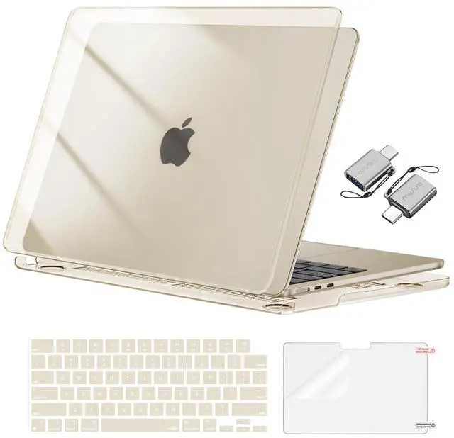 & Touch ID with dimension: 11.97 x 8.46 x 0.44 inch (2022 2023 2024 2025 Released). Fully vented for heat disbursement, fully access to all buttons and features. Totally removable, easy to put on and take off that can protect your laptop from scrapes and scratches. ^^ 2 pack USB C to USB adapter plug the adapter USB Type-C end into laptop USB-C port, then connect another female USB 3.0 port to standard USB-A device, such as, mouse, keyboard, SSD and flash. Support OTG function to load USB flash disk directly. This USB Type-C to USB connector also support synchronous charging to your phone and tablet with data transfer speed up to 5.0G bps. This USB-C to USB 3.0 converter is made of Zinc alloy with baking finished surface. ^^ Including matching color keyboard cover & screen protector to protect your keyboard & screen against spills. This type C adapter will not affect Wifi signal or cause heat issue.